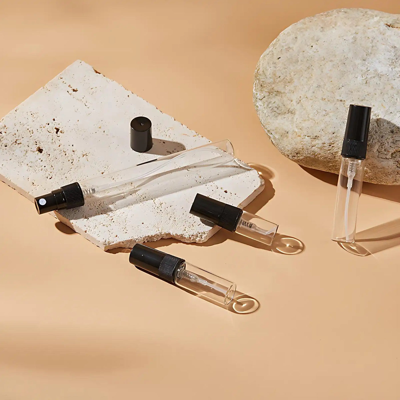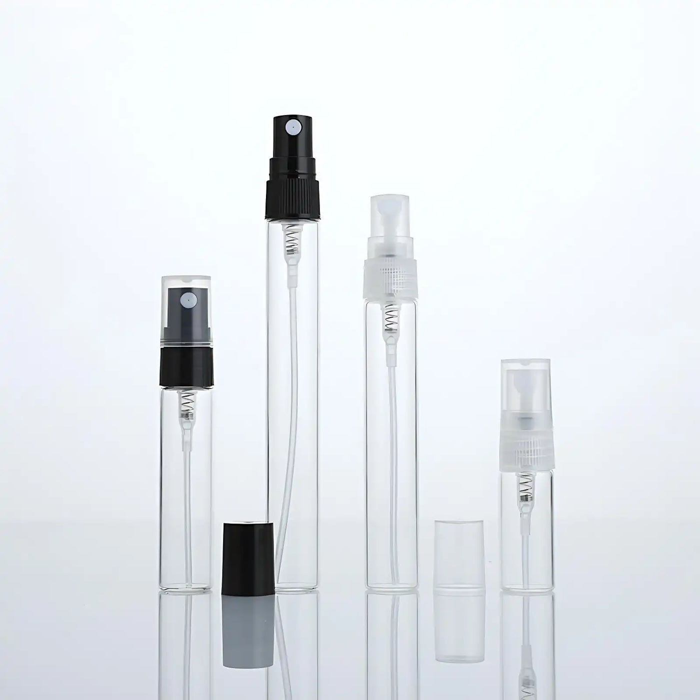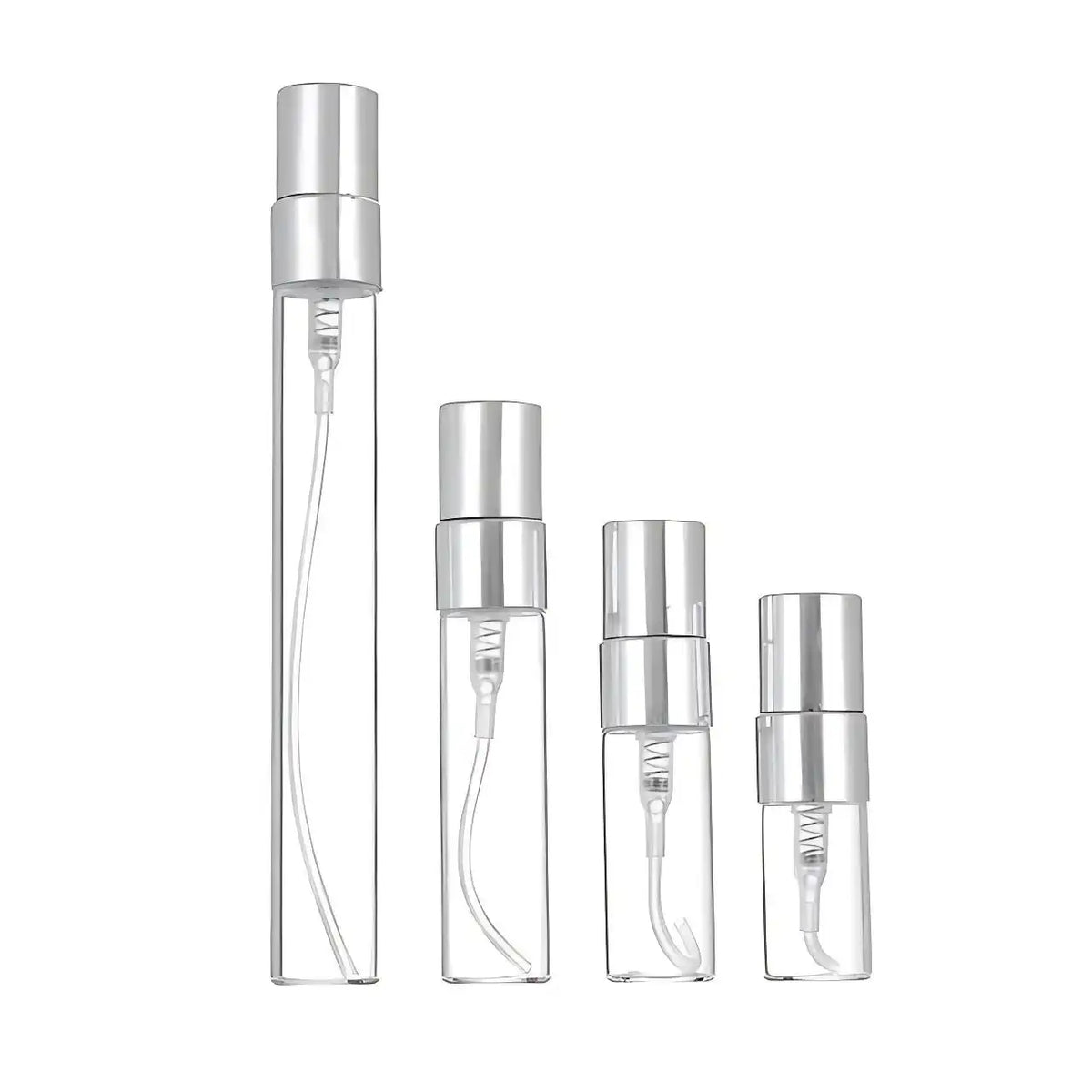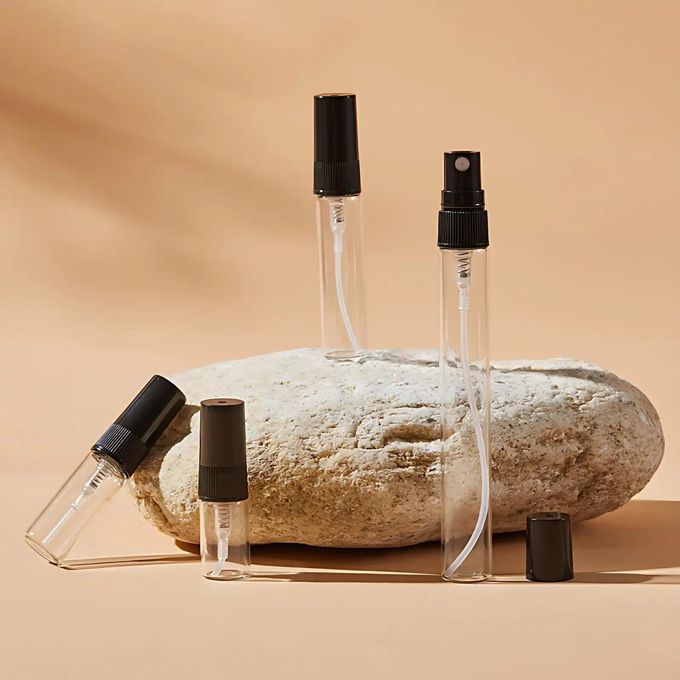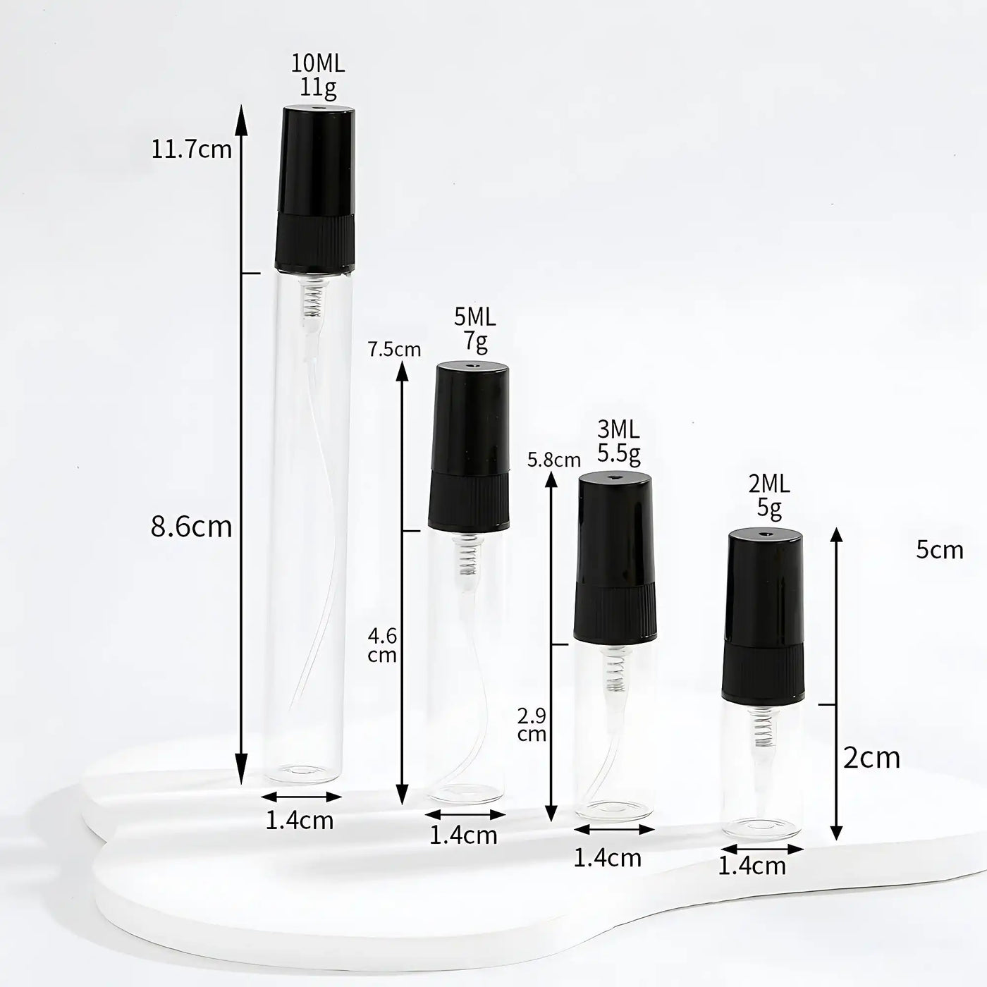 Travel-Size Glass Perfume Atomizer Bottles (2ml, 3ml, 5ml, 10ml) - Clear Cylinder Refillable Spray for Essential Oils
