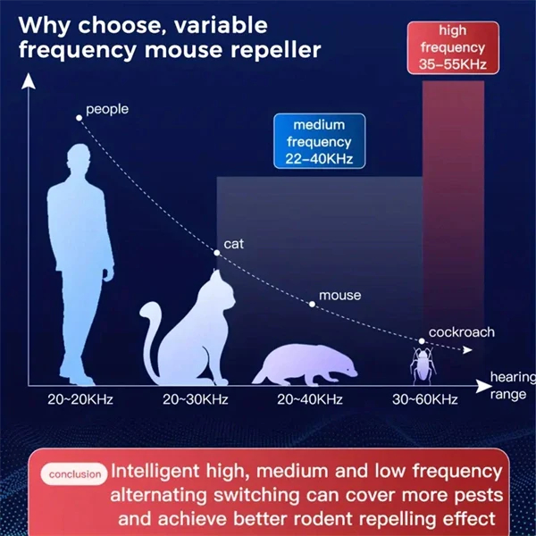 Advanced Ultrasonic Technology: Emits high-frequency sound waves that are inaudible to humans and pets, but intolerable to common household pests.