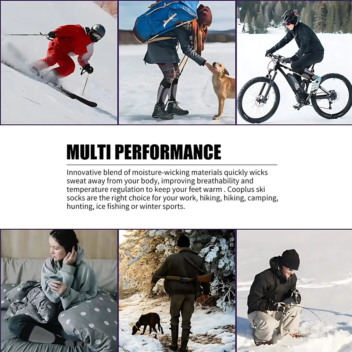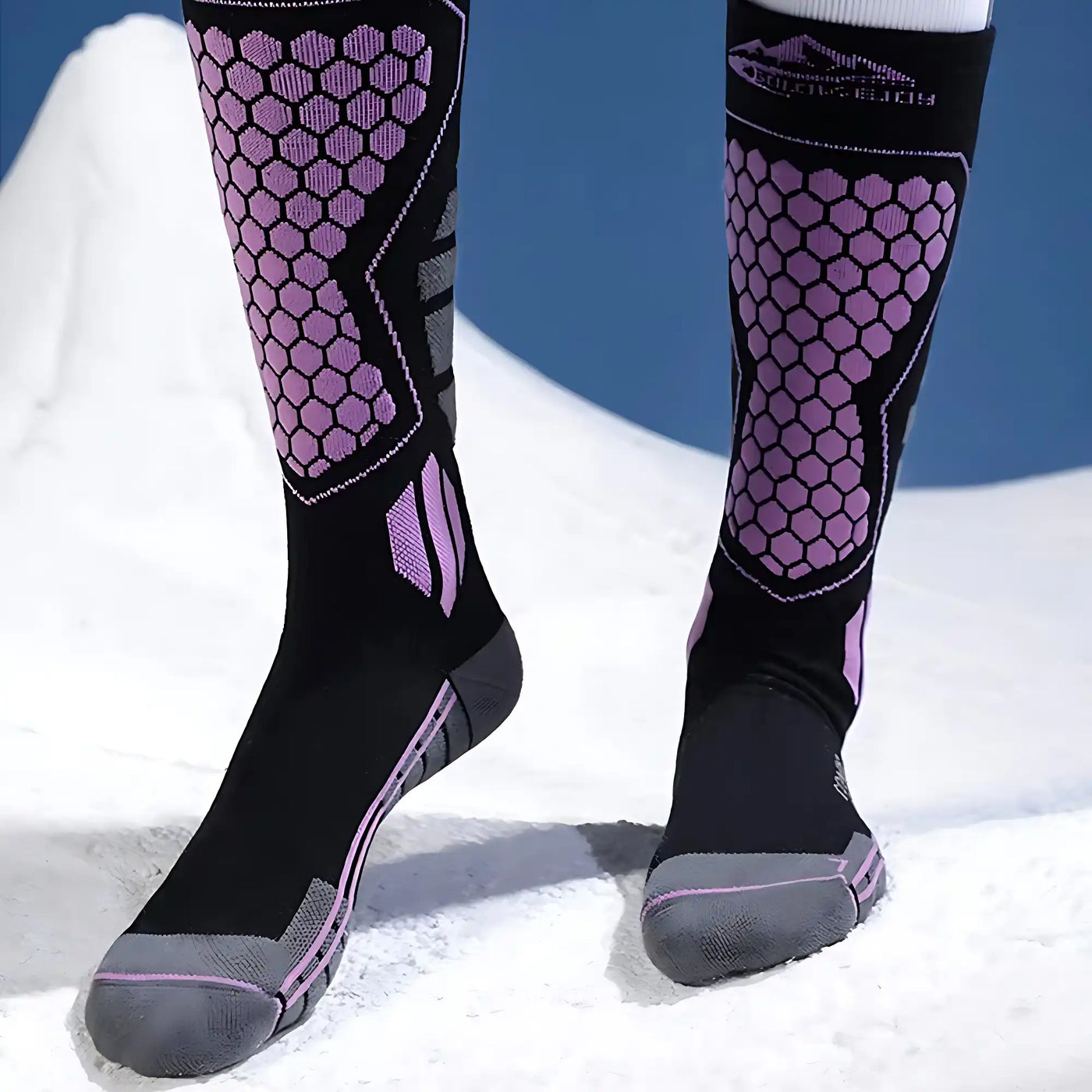 Crafted from wool blend, these ski socks keep your feet warm and comfortable even in extremely cold weather. The compression feature helps relieve muscle fatigue and provides support for the ankles, ideal for skiing or other winter sports.