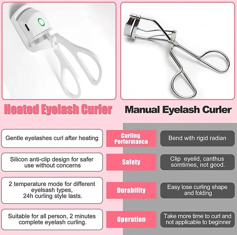 LONG LASTING - Featuring an ergonomic design with an innovative heating function, our electric eyelash curler ensures you get the desired effect and held the curl longer than regular lash curlers.PORTABLE &、 RECHARGEABLE - Our eye lash curler is very compact and easy to carry around. It will easily fit with your beauty kit, cosmetic box or travel case. Heated eyelash curlers come with a battery installed, you'll never have to buy batteries.