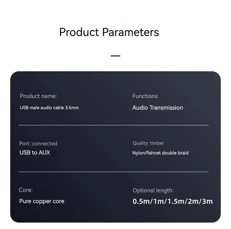 Package list: usb to 3.5mm cable * 1