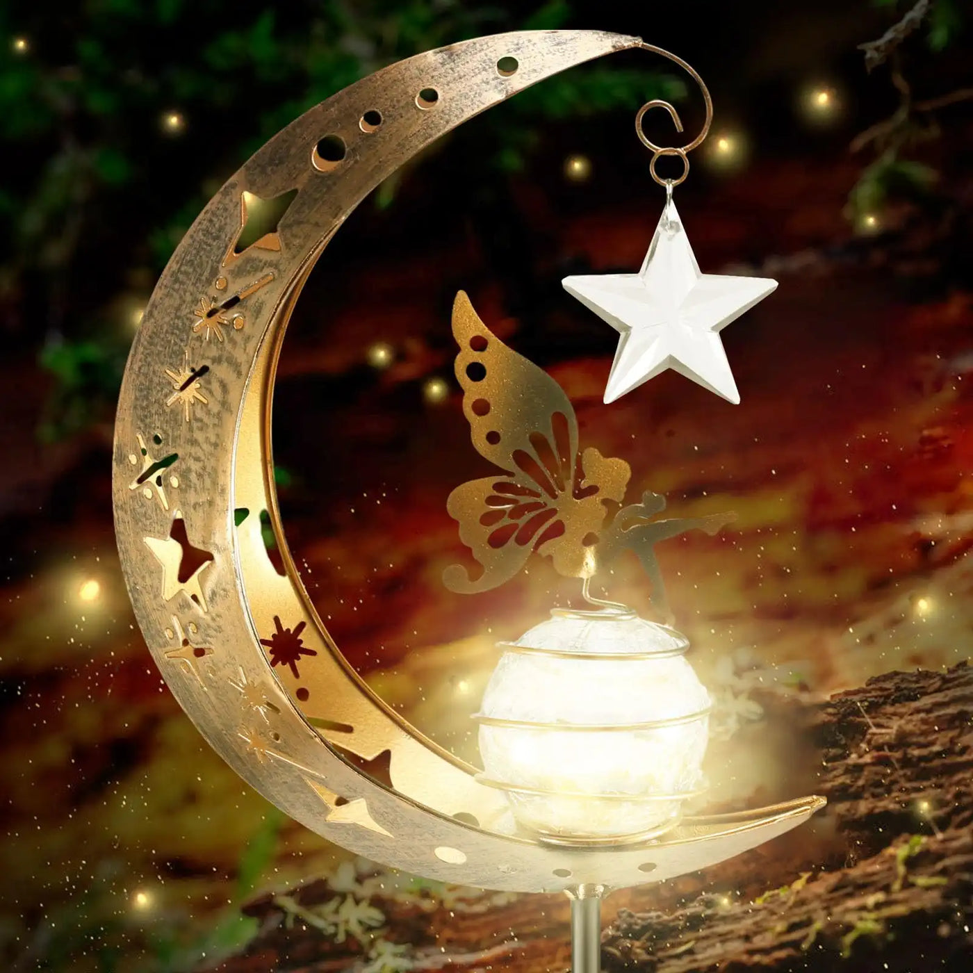 Transform your garden into an enchanted realm with our Solar Moon Fairy Lights. Crafted with delicate crackle glass, this celestial lantern dances with intricate light patterns as dusk falls, casting a warm, fairy-tale glow across paths, flowerbeds, and patios.
