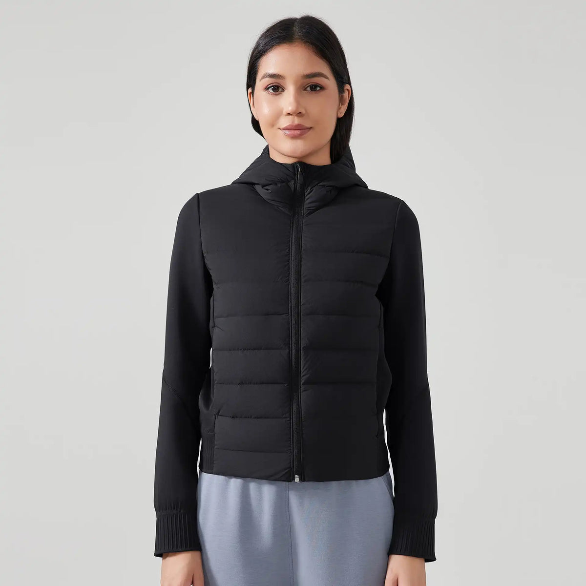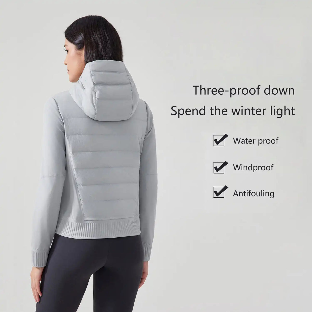 Engineered for elegance in motion, this women's down jacket delivers sophisticated warmth without weight. Its water-repellent finish and contemporary cropped silhouette create perfect harmony between protection and style, ready for urban adventures and crisp days alike.