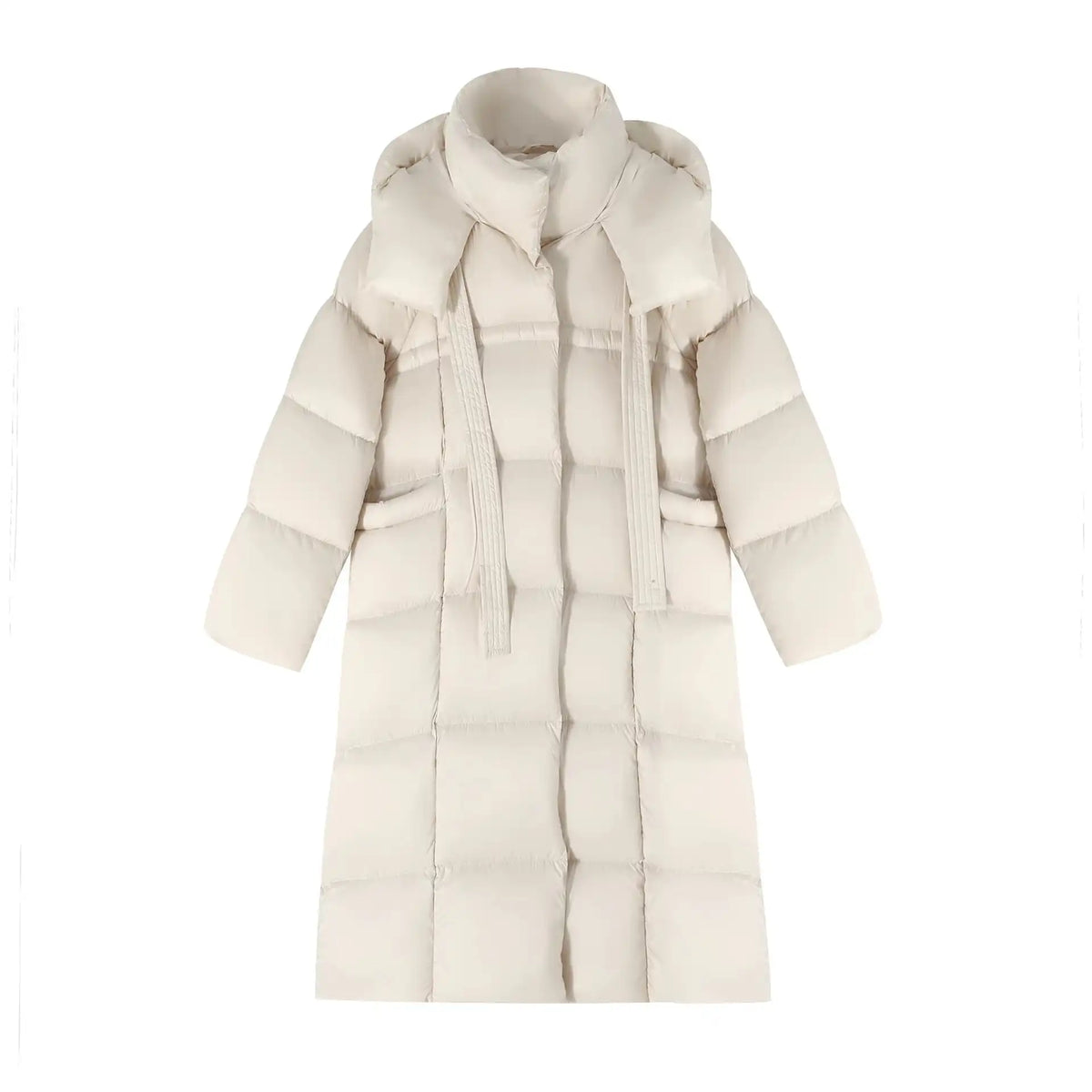 Women's Luxury Extra-Long Cocoon Down Coat - 2025 Winter Thermal Puffer Jacket Fashionable Casual Knee-Length Parka - White / M